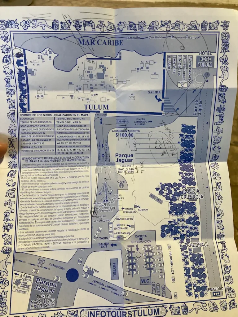 ちょっとわかりにくいですが、これがトゥルム遺跡に行くまでのマップです。