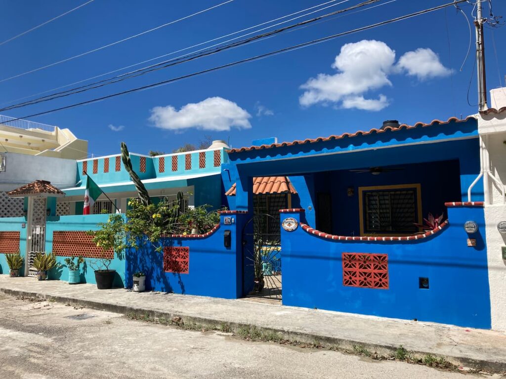 チェムイル(Chemuyil)には、カラフルで植物のある素敵な住宅が沢山あって、楽しみながら歩きました。