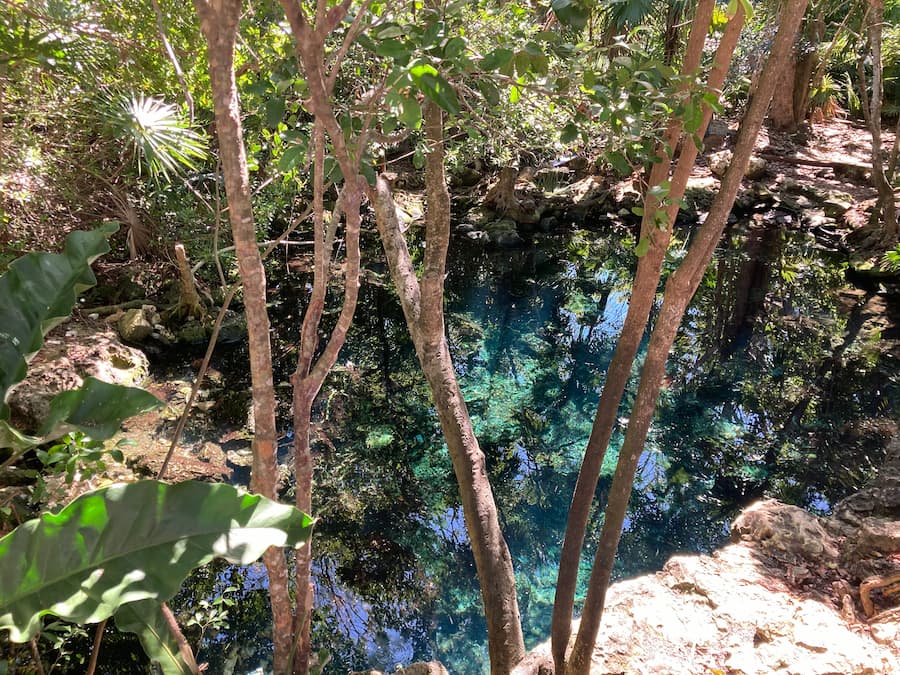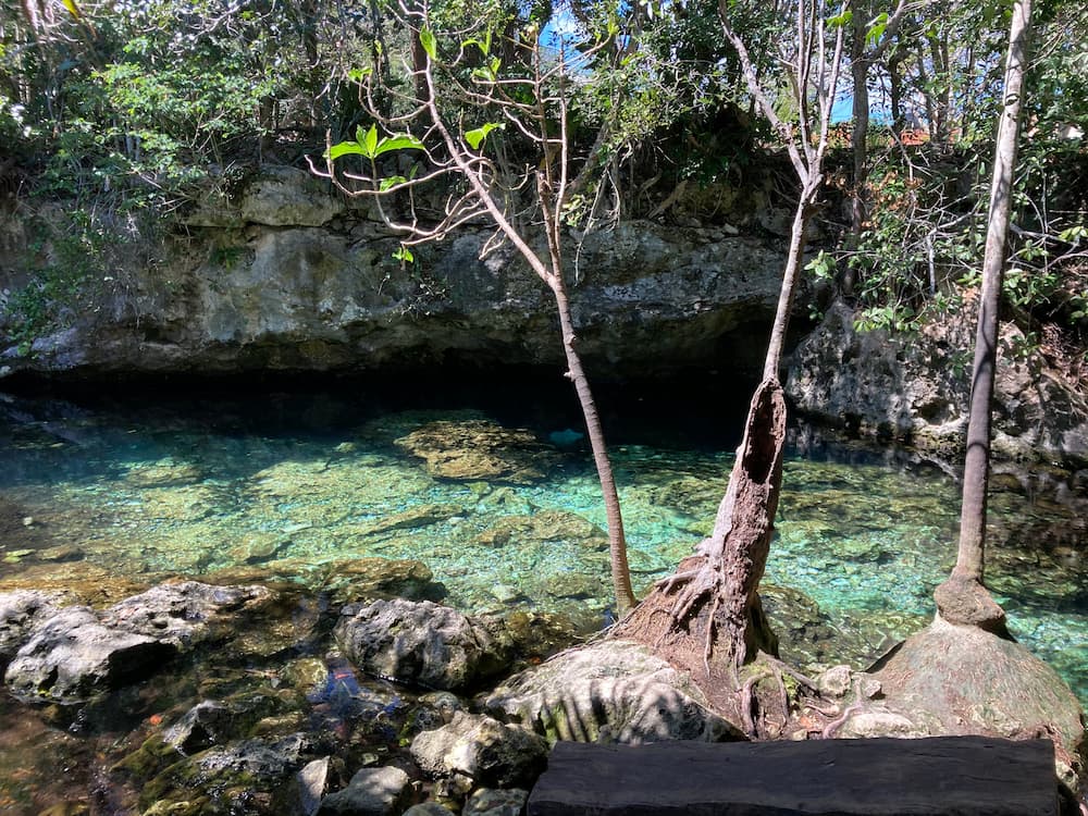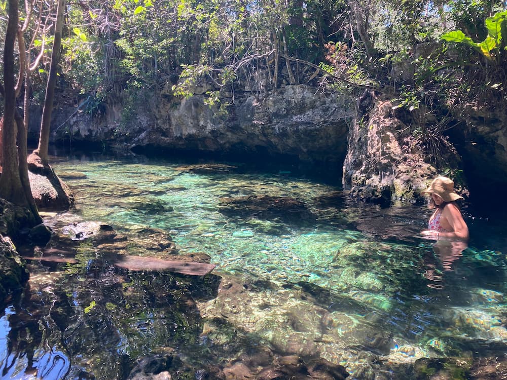 次に訪れたのは、完全に屋外に開けたセノーテ。明るく開放的で、泳ぎやすい環境でした。